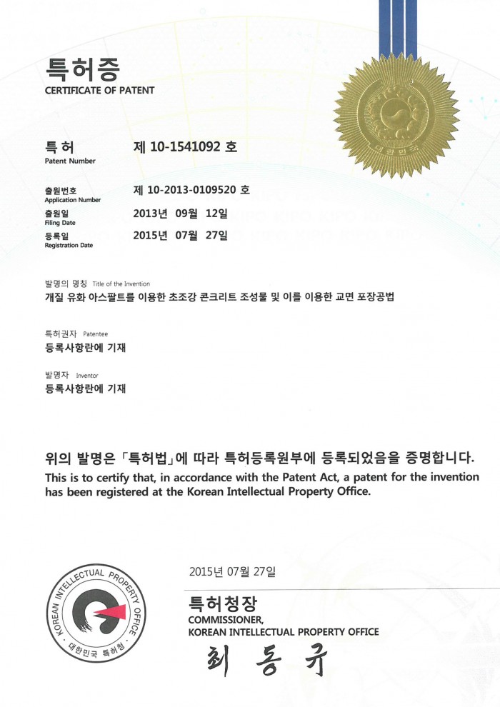 특허증 제10-1541092호 개질 유화 아스팔트를 이용한 초조강 콘크리트 조성물 페이지 정보 글쓴이 관리자 조회 600 등록일 time18-01-12 15:55 댓글 0건 관련링크 다음글 목록 답변 본문 특허증 제10-1541092호 개질 유화 아스팔트를 이용한 초조강 콘크리트 조성물 다음글 목록 답변